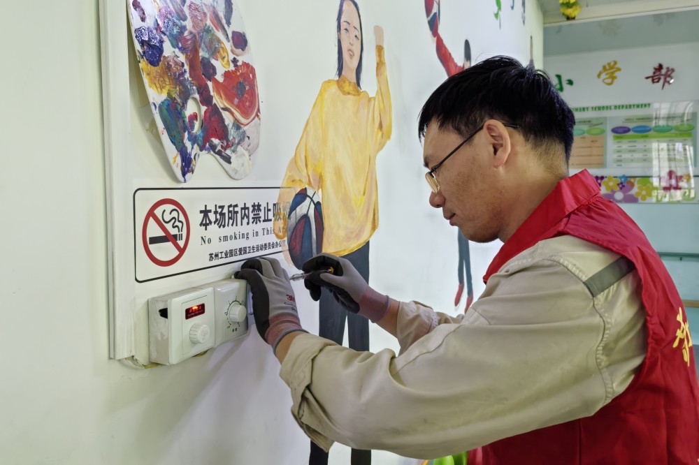 結(jié)對以來,蘇州藍天充分發(fā)揮電力專業(yè)優(yōu)勢,將企業(yè)特長轉(zhuǎn)化為公益力量。2020 年 9 月的周末,志愿者們聯(lián)合北部燃機熱電公司開展 “電力關(guān)懷進校園” 活動,對學校電路老化、設(shè)備短路等隱患逐一排查維修,用專業(yè)守護校園用電安全。2021年1月3日,面對40 套待組裝的課桌椅,十余名志愿者分工協(xié)作,半天內(nèi)完成安裝,為孩子們打造舒適學習空間。疫情期間的 2022 年,黨支部緊急采購的防疫帳篷在五月風雨中為復課的孩子們撐起保護傘。2024 年兒童節(jié)前夕,志愿者們安裝改造的感應(yīng)燈具,更成了送給孩子們的暖心禮物。工會還組織藝術(shù)特長員工與孩子們畫畫唱歌,讓歡樂在校園流淌。