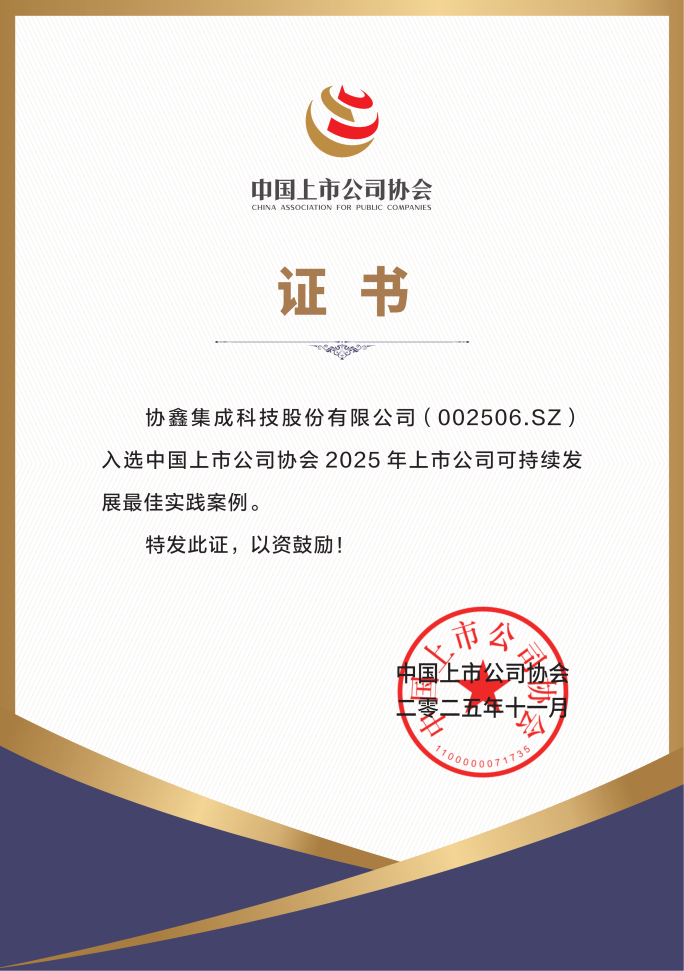 11月18日,由中國上市公司協(xié)會(下稱“中上協(xié)”)主辦、中上協(xié)可持續(xù)發(fā)展專業(yè)委員會承辦的2025上市公司可持續(xù)發(fā)展交流會在北京隆重召開。會上,中上協(xié)正式發(fā)布年度《中國上市公司可持續(xù)發(fā)展最佳實踐案例》與《中國上市公司可持續(xù)發(fā)展優(yōu)秀實踐案例》,協(xié)鑫集團(tuán)憑借在綠色低碳領(lǐng)域的深度布局與可持續(xù)發(fā)展的系統(tǒng)實踐,旗下協(xié)鑫集成(002506.SZ)獲評“2025上市公司可持續(xù)發(fā)展最佳實踐案例”, 協(xié)鑫科技(03800.HK)、協(xié)鑫能科(002015.SZ)、獲評“2025上市公司可持續(xù)發(fā)展優(yōu)秀實踐案例”,成為本次評選中少數(shù)實現(xiàn)“最佳+優(yōu)秀”案例全覆蓋的企業(yè)集團(tuán),彰顯協(xié)鑫在ESG(環(huán)境、社會及治理)領(lǐng)域的行業(yè)標(biāo)桿地位。