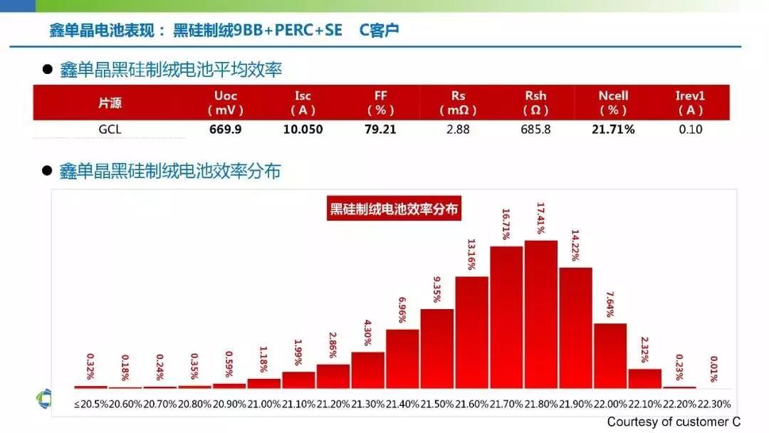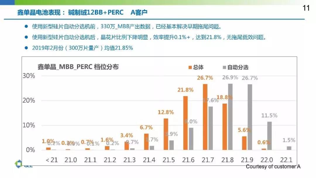 l 鑫單晶PERC電池量產效率在相同產線上與直拉單晶相比,差距小于0.3%絕對效率。