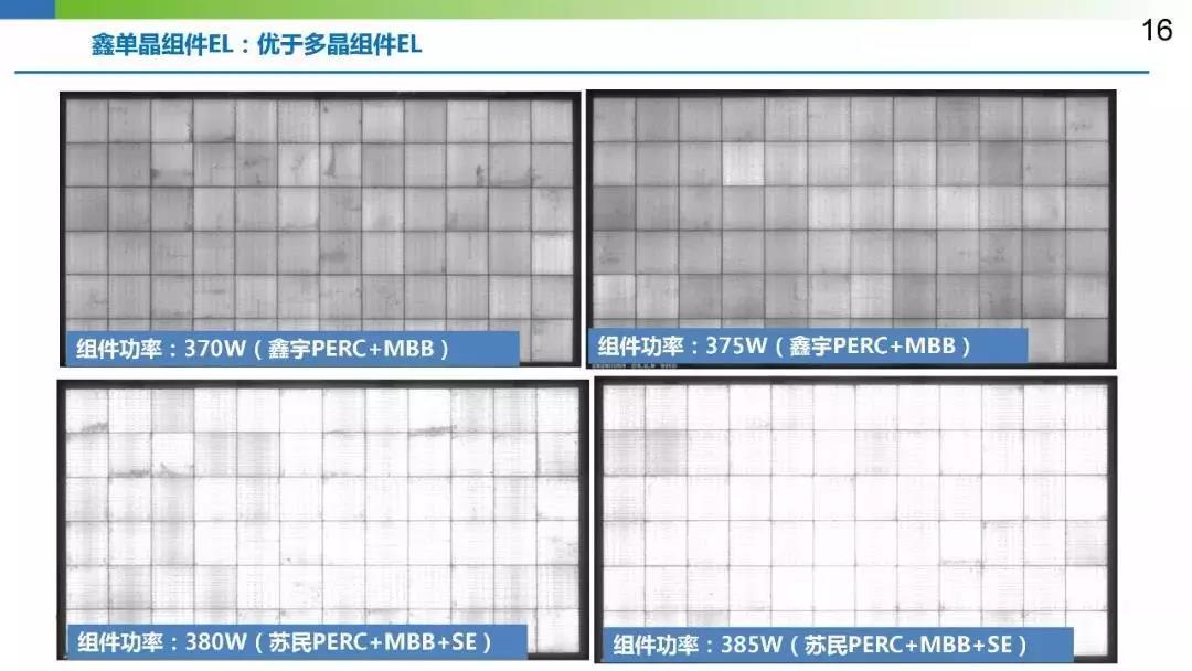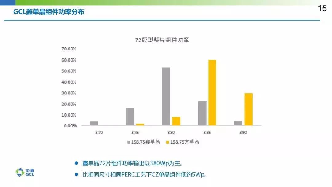 l 鑫單晶PERC電池組件在72片全檔位型號上與直拉單晶組件相比,功率差小于5Wp。