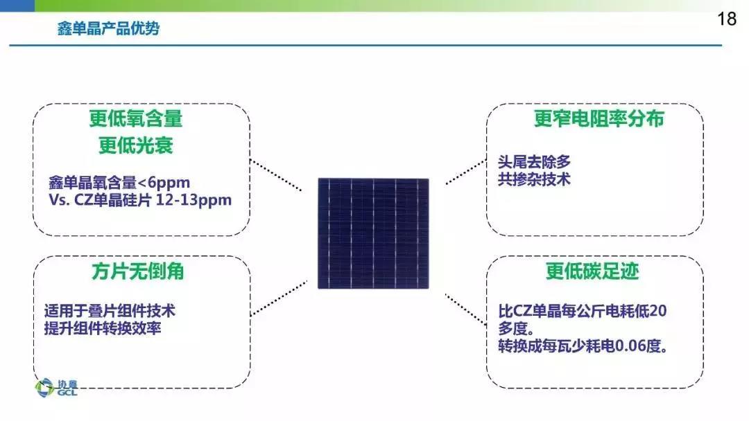 說到底,“鑫單晶G3”到底有哪些優勢呢?我們可以總結為:更低光衰、更窄電阻率分布、方片無倒角、更低碳足跡、長晶階段的電耗更低,等等。