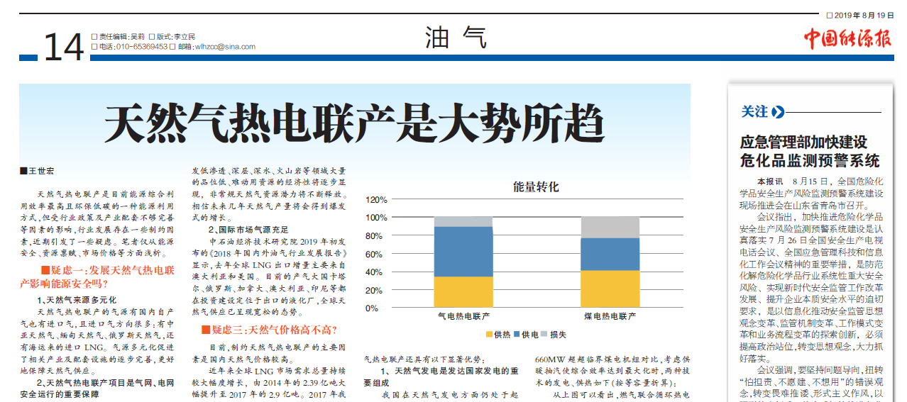 天然氣熱電聯產是目前能源綜合利用效率最高且環保低碳的一種能源利用方式,但受行業政策及產業配套不夠完善等因素的影響,行業發展存在一些制約因素,近期引發了一些疑慮。筆者僅從能源安全、資源稟賦、市場價格等方面淺析。