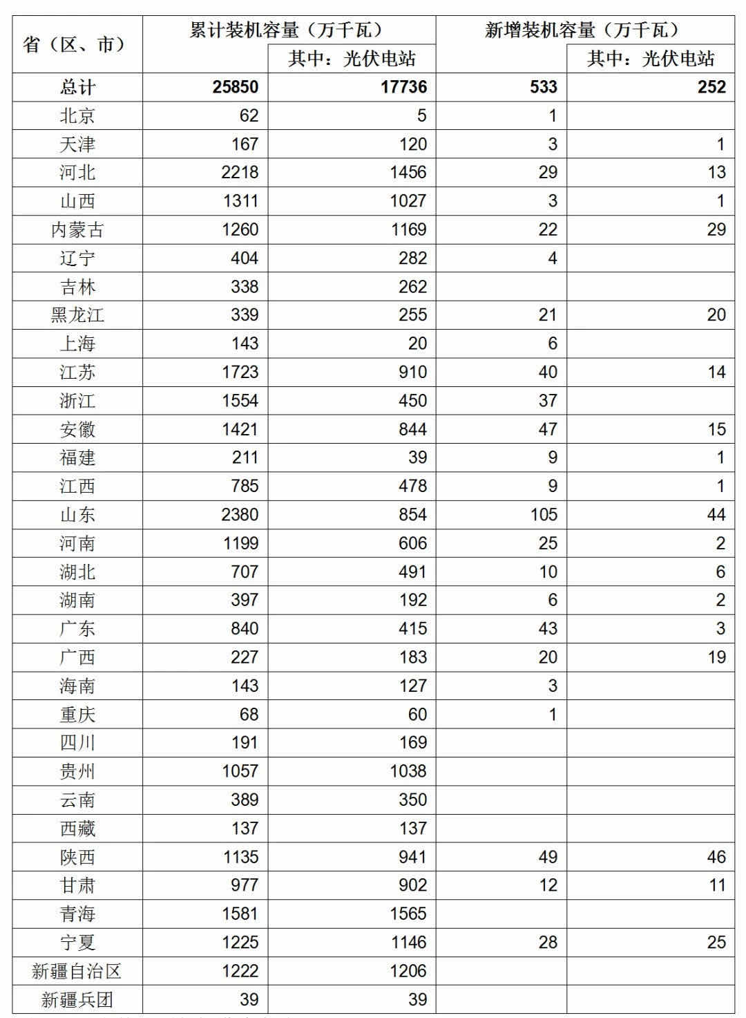 2021年一季度全國光伏發電建設運行情況 http://m.szreste.com/newdetail/1631.html 2021-04-28 注:1.以上統計不包括港澳臺地區; 2.數據來源:國家可再生能源中心。