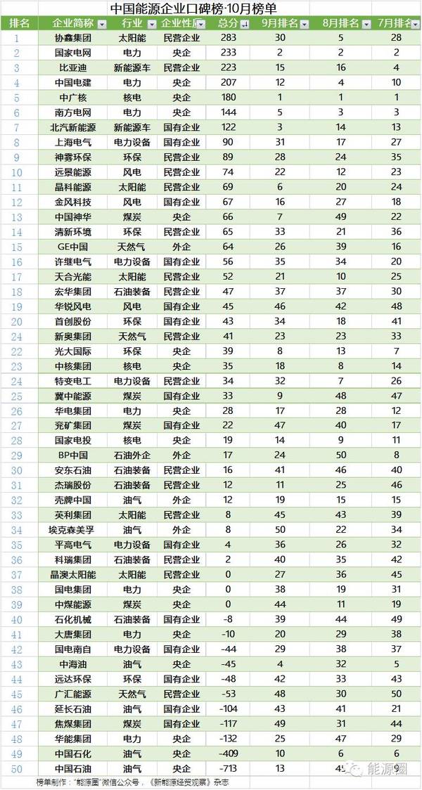 綜觀“能源圈”聯合《新能源經貿觀察》和艾豐經濟發展研究院連續13期的口碑榜,10月榜單出現的最大一個最大變化,是民營能源企業第一次成為口碑榜狀元。