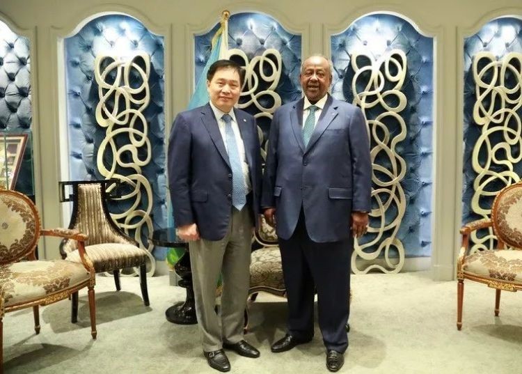 吉布提共和國總統(tǒng)伊斯梅爾•奧馬爾•蓋萊(右)與協(xié)鑫集團(tuán)董事長朱共山(左)
