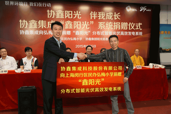 6月5日下午,作為“世界環(huán)境日”的一項(xiàng)主題活動(dòng),協(xié)鑫集成科技股份有限公司向上海市弘梅小學(xué)捐贈(zèng)了一套5千瓦的“鑫陽(yáng)光”智能光伏發(fā)電系統(tǒng)。由此,弘梅小學(xué)也將成為上海市首個(gè)安裝光伏發(fā)電系統(tǒng)的中小學(xué)。