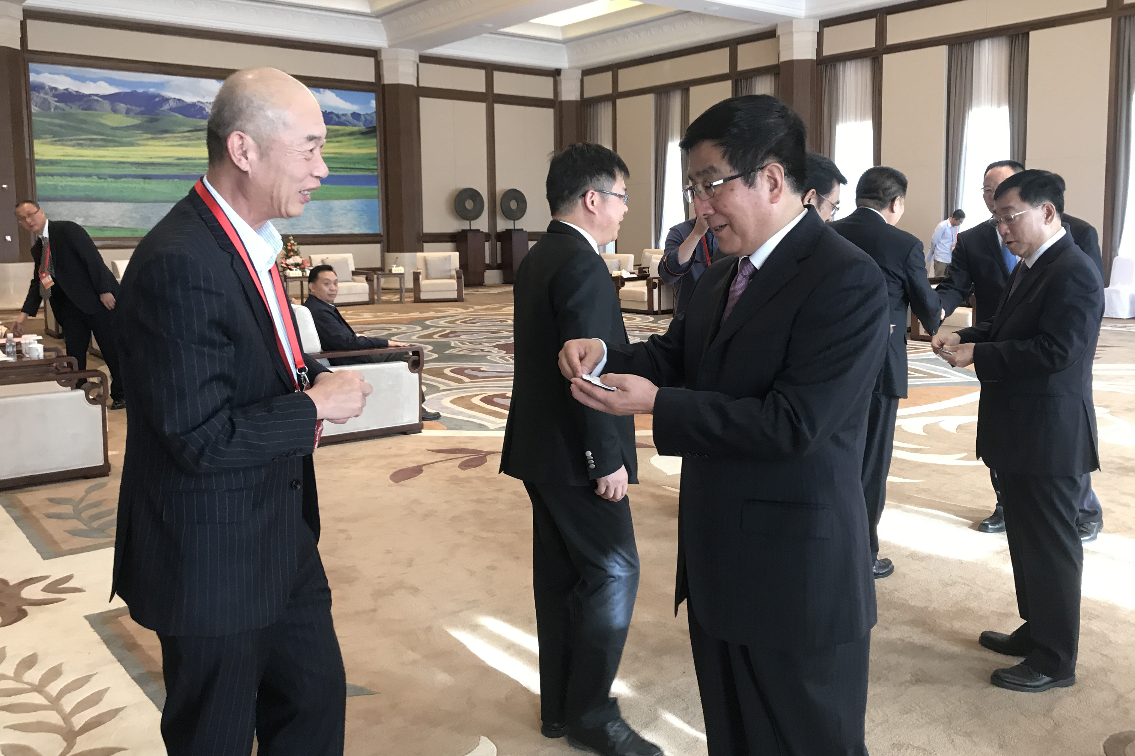 18日下午,沙宏秋與百度公司董事長兼首席執行官李彥宏、吉利控股董事長李書福、中車集團副總裁余衛平、招商局集團副總經理蘇新剛等17名知名企業家,在敦煌國際會議中心接受甘肅省委書記林鐸,人民日報副社長張建星,副總編輯呂巖松、張首映等領導的親切會見。