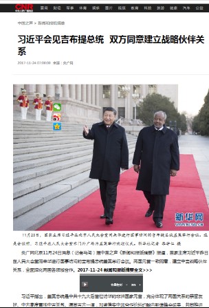 新華網《習近平同吉布提總統舉行會談》報道全文:
