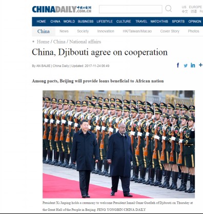 《中國日報》關于吉布提共和國總統伊斯梅爾·奧馬爾·蓋萊對中國進行國事訪問的報道。?