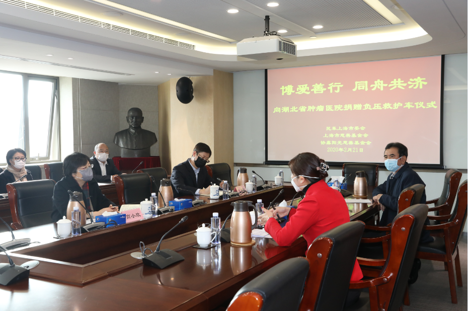 2月21日下午,在上海市慈善基金會的見證下,民革上海市委員會、協(xié)鑫集團(tuán)聯(lián)合在上海民主黨派大廈舉行儀式,雙方攜手向湖北省腫瘤醫(yī)院捐贈一輛負(fù)壓救護(hù)車,為疫情防控助一臂之力。民革中央副主席、上海市人大常委會副主任、民革上海市委員會主委高小玫,民革上海市委員會副主委王光賢,上海慈善基金會副理事長方國平,協(xié)鑫集團(tuán)副董事長、協(xié)鑫陽光慈善基金會主席孫瑋等領(lǐng)導(dǎo)出席捐贈儀式。