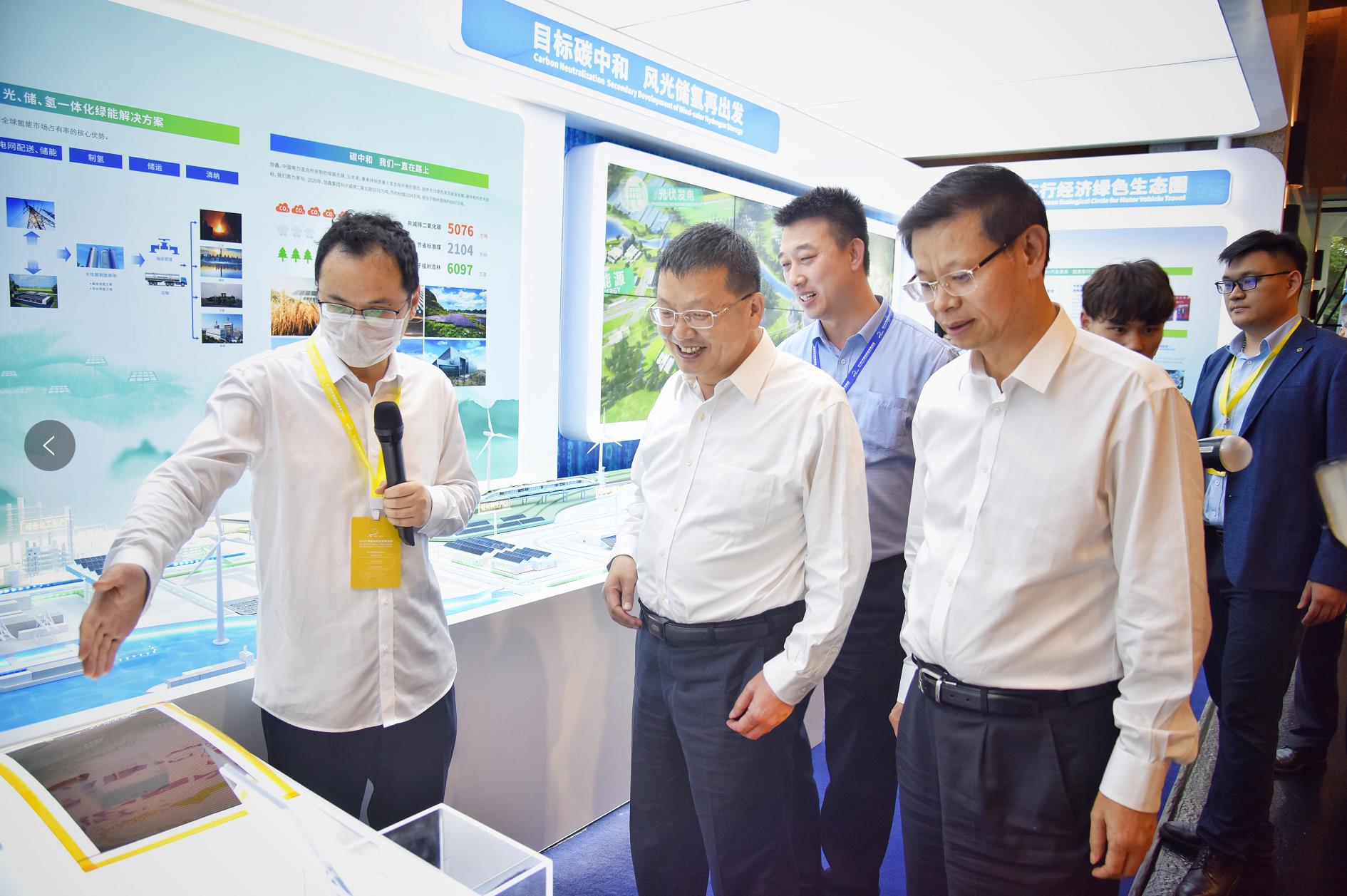6月27日,為期3天的國際能源變革對話在江蘇省蘇州市開啟。當日下午,在本次對話活動的重要環節——閉門會議舉行前夕,國家發展改革委黨組成員,國家能源局黨組書記、局長章建華,在江蘇省委常委、蘇州市委書記許昆林等領導的陪同下,專程來到協鑫展臺考察指導,詳細聽取技術人員對協鑫通過顆粒硅、鈣鈦礦、風光儲氫、移動能源等高新技術路徑推動達成“碳達峰”“碳中和”目標所作努力的匯報。