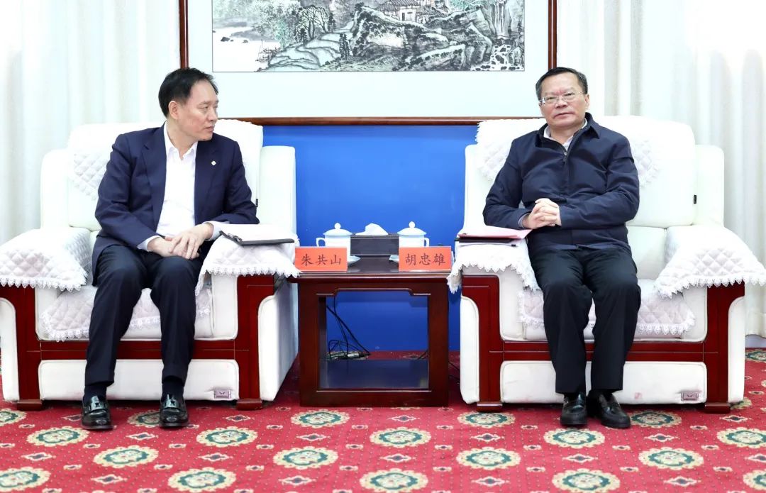 2月24日,貴州省委常委、貴陽市委書記、貴安新區黨工委書記胡忠雄在筑會見協鑫(集團)控股有限公司董事長朱共山一行,雙方就加強戰略合作進行深入交流。
